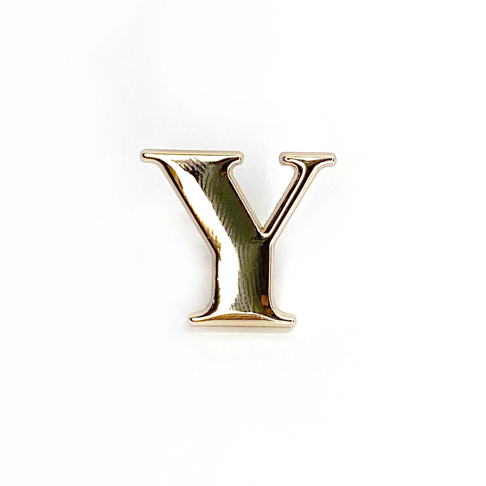 Letra Y 2 cms color oro Tiene patitas en la parte de atrás para su colocación
